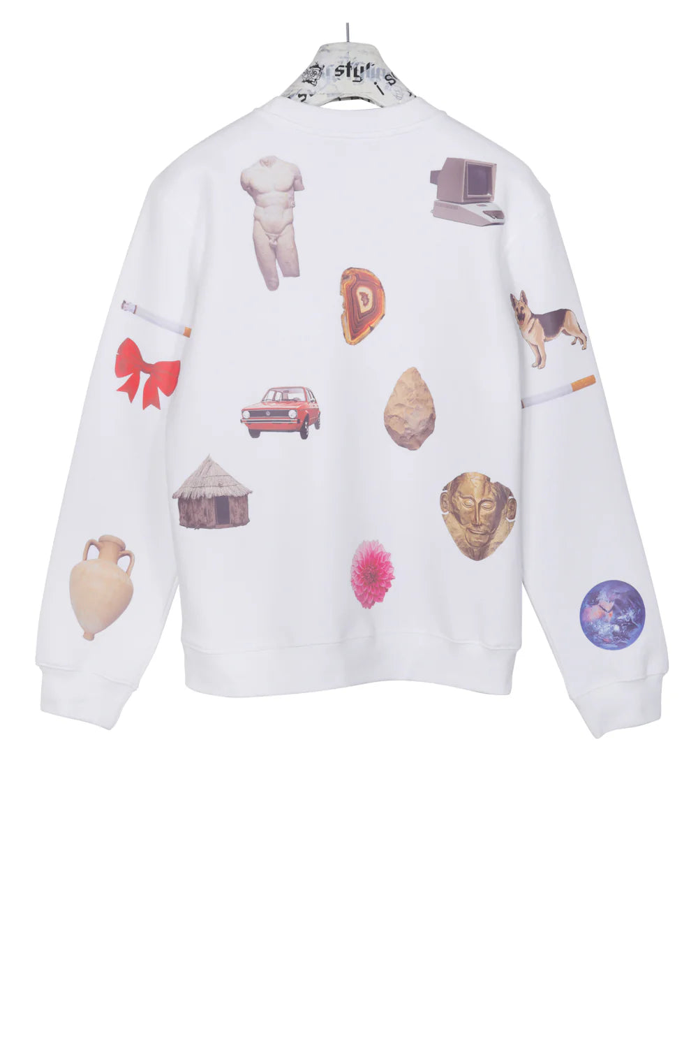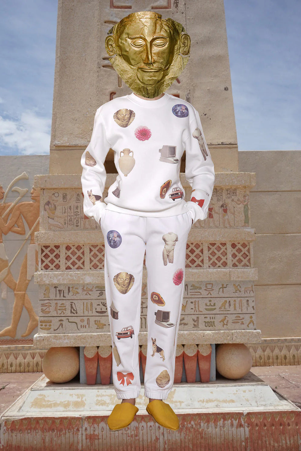 The history of mankind adorns this striking tracksuit. Featuring a bold transfer print that showcases humanity's greatest achievements across the entire garment, this piece celebrates progress and innovation in style. The design captures iconic moments and milestones that have shaped our world, making it a conversation starter for anyone who appreciates history and culture.