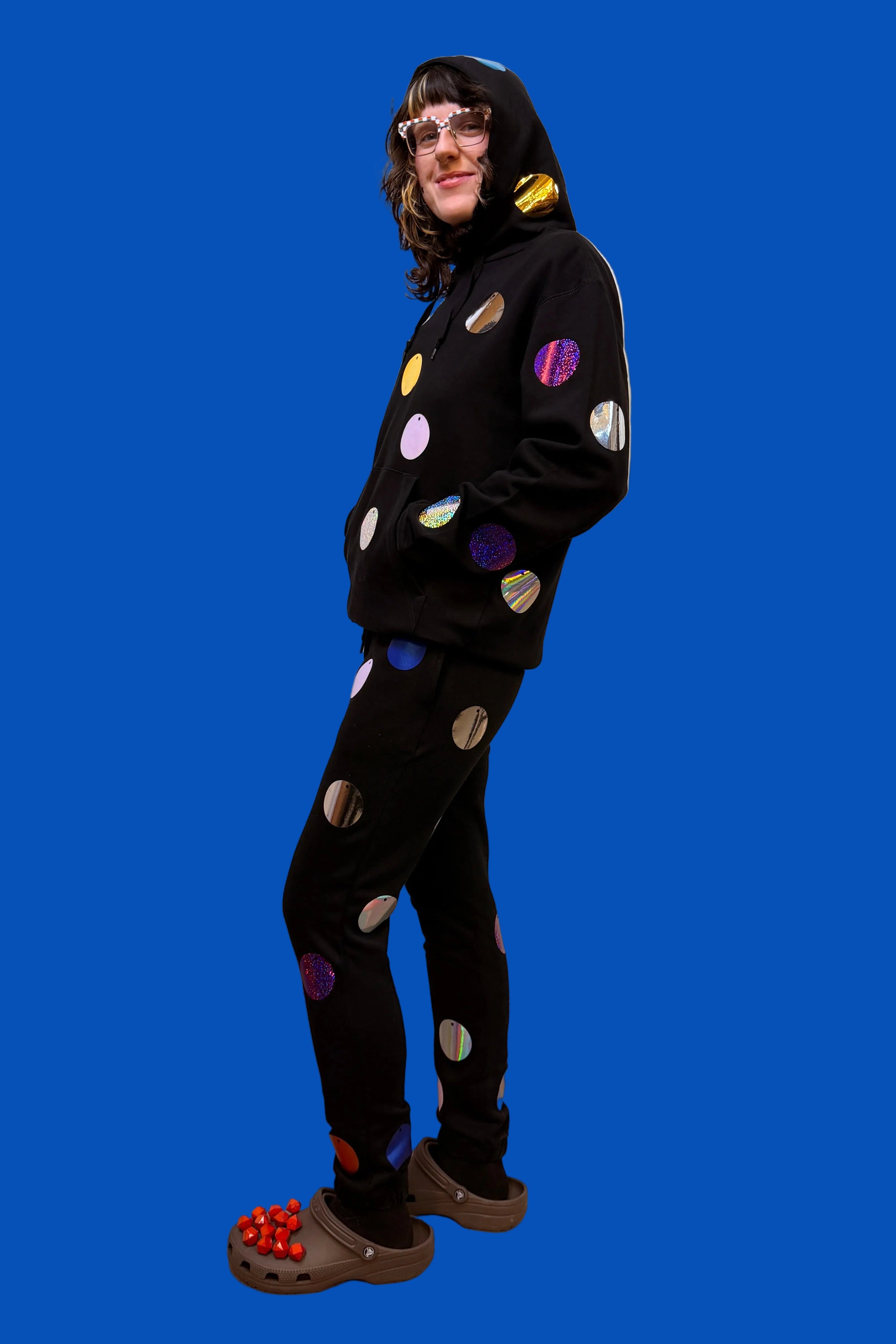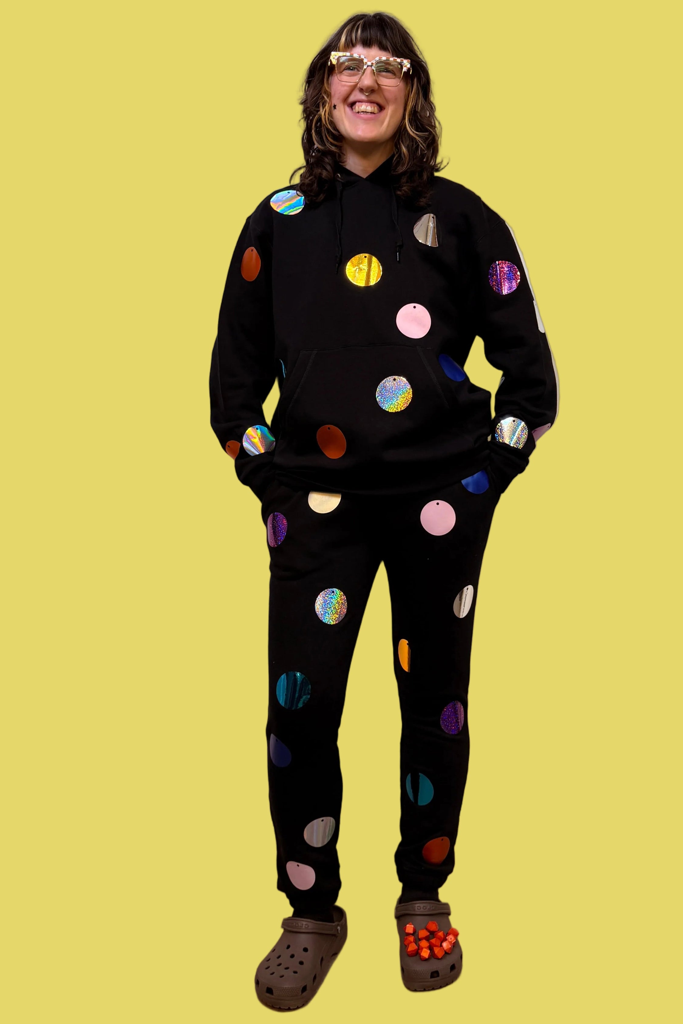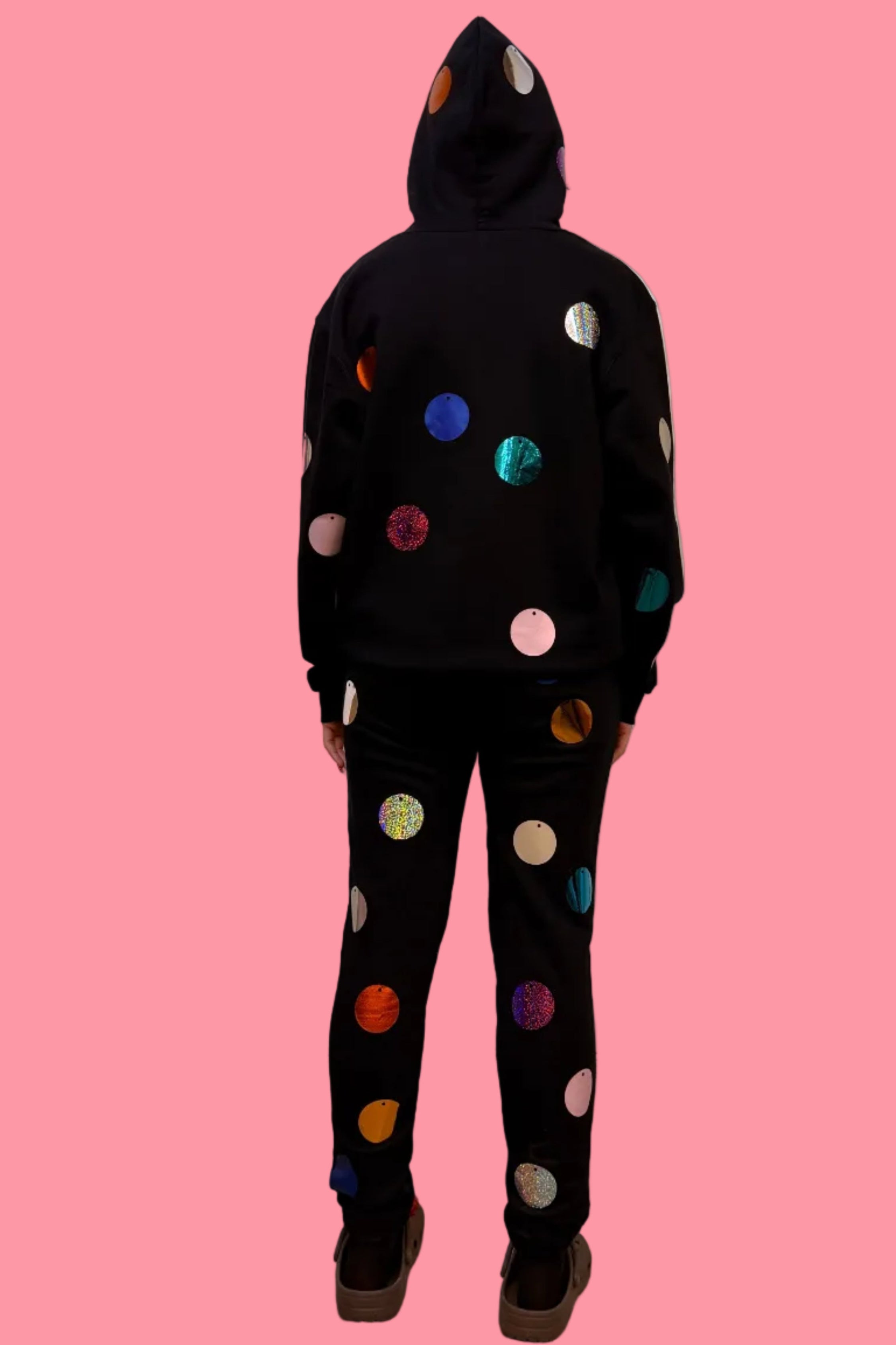 Elevate your casual look with the Pailles Tracksuit, featuring an eye-catching foil print of oversized sequins that adds instant glamour to any ensemble. The refined color palette strikes the perfect balance between fun and sophistication.
