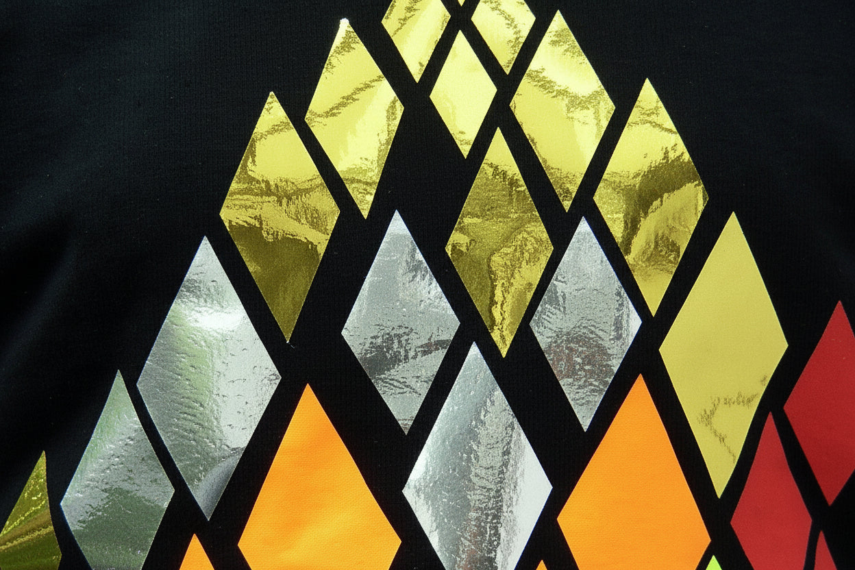 • Multicolor Foil Print – Handcrafted, vibrant foil print on the front creates a dazzling, festival-ready look.