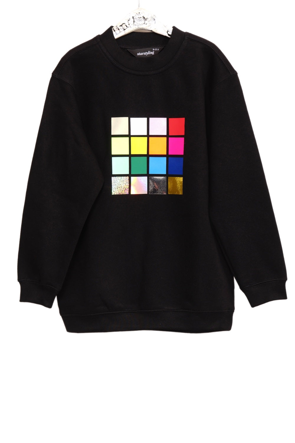 This unisex kids sweatshirt has a multicolor foil print