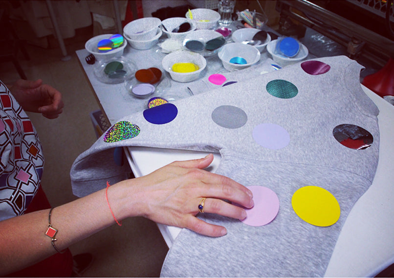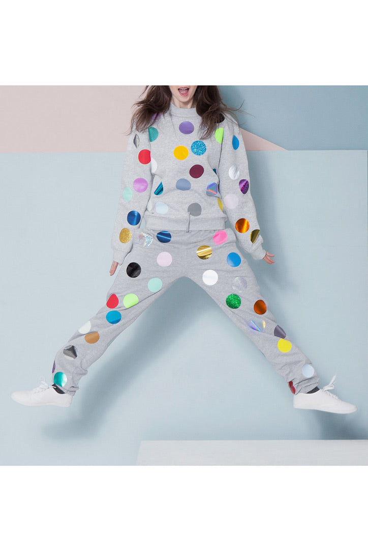 Introducing a one-of-a-kind unisex sweater bursting with vibrant multicolor dots in every direction. Handcrafted with care, this cozy piece showcases nearly our entire foil collection in a spectacular rainbow display.
