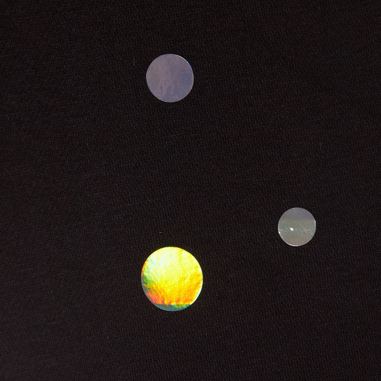Inspired by the stars in the sky, the holographic foilprint dots of different sizes are carefully placed by hand in our atelier.