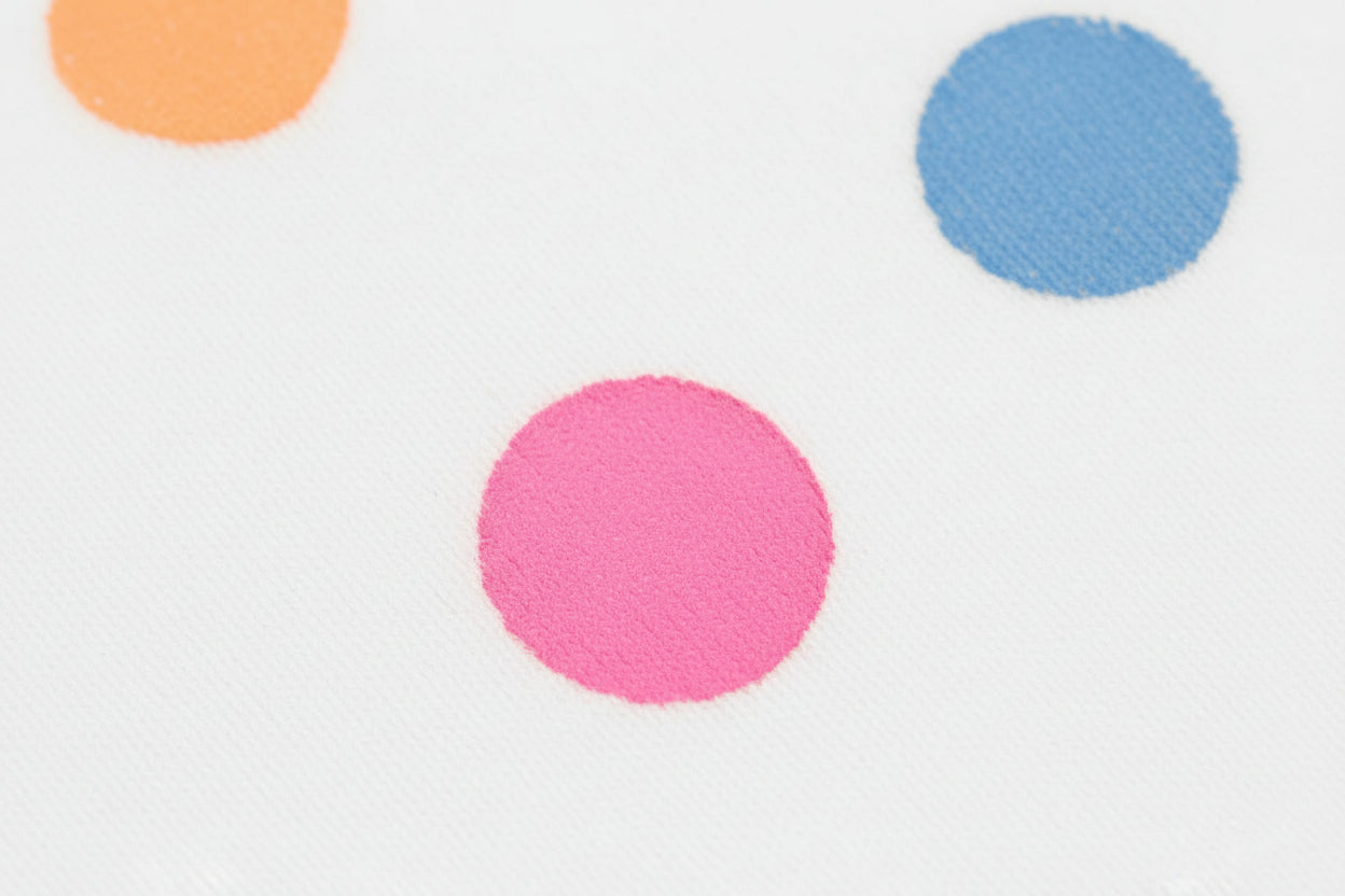 There are handstamped colorful Points allover.