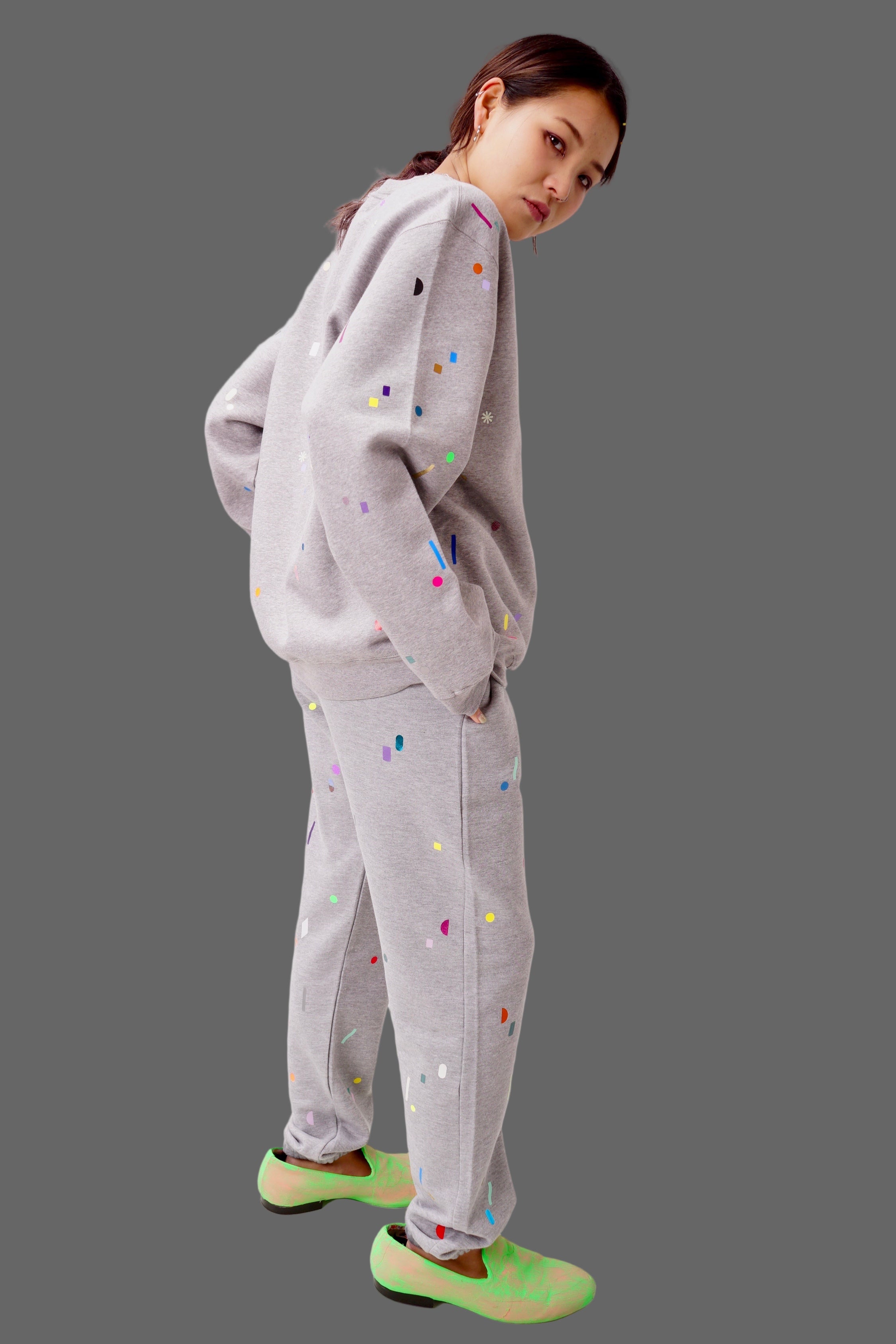 Multicolored geometric forms all over. For this we use different types of foil... in fact, we use every colorful foil we have!Handmade at our atelier in Berlin - every item is unique. You'll be sparkling and shining on the street! A one-of-a-kind design that's sure to turn heads and have your friends dazzled - the perfect statement piece!