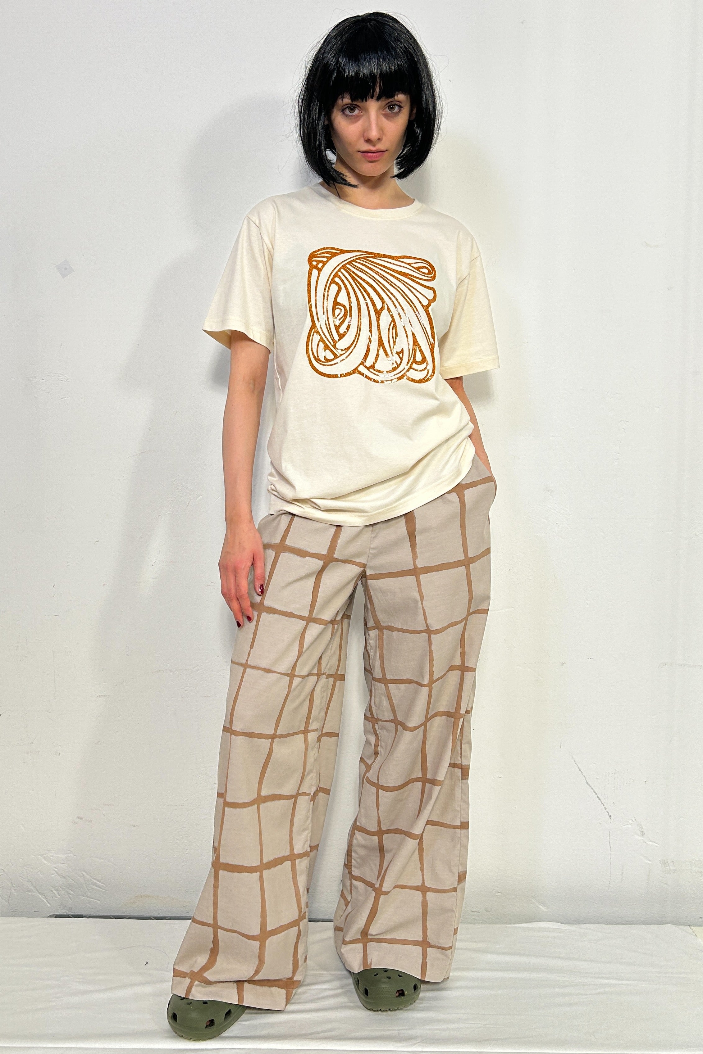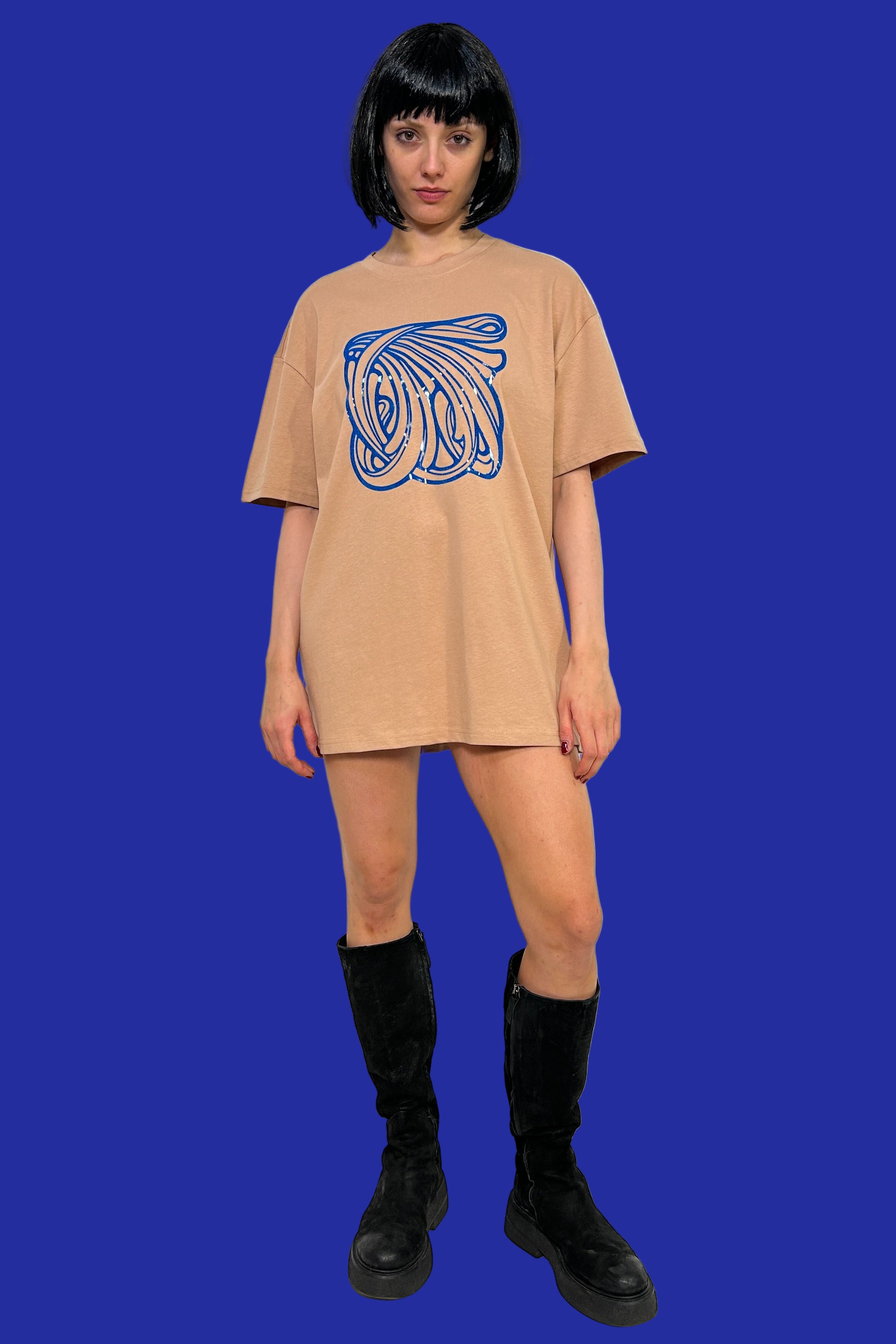 Hand-printed in our Kreuzberg studio, the Schwung Heavy Oversize T-shirt turns everyday wear into a living artwork. Inspired by Jugendstil, Art Nouveau designs, the sparkly motif dances in the light and glimmers with a timeless modernist style.